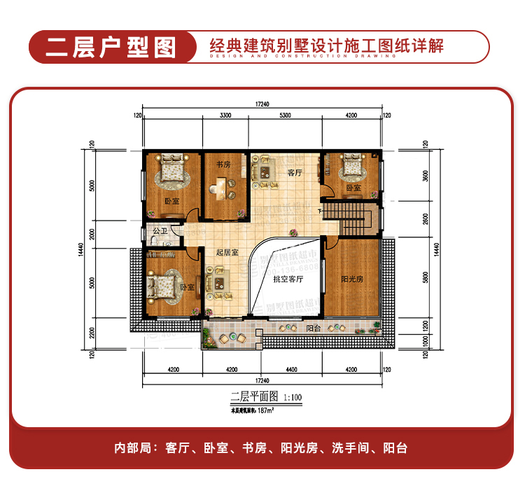 购买本套图纸仅提供打印好的图纸一份,我们不出售电子文件、光盘。我们设计的图纸非常详细,用A3规格打印图纸,比传统蓝图更清晰、容易复印、方便收藏,可以直接应用到施工现场。售后服务仅为图纸答疑,不包任何修改,因为只要其中一张图纸改变,其它图纸相应均需修改,工作量较大,所以我们不包修改。如果您个性要求较多需按要求订做设计,请查看 别墅设计业务流程,并联系设计客服咨询设计收费标准。