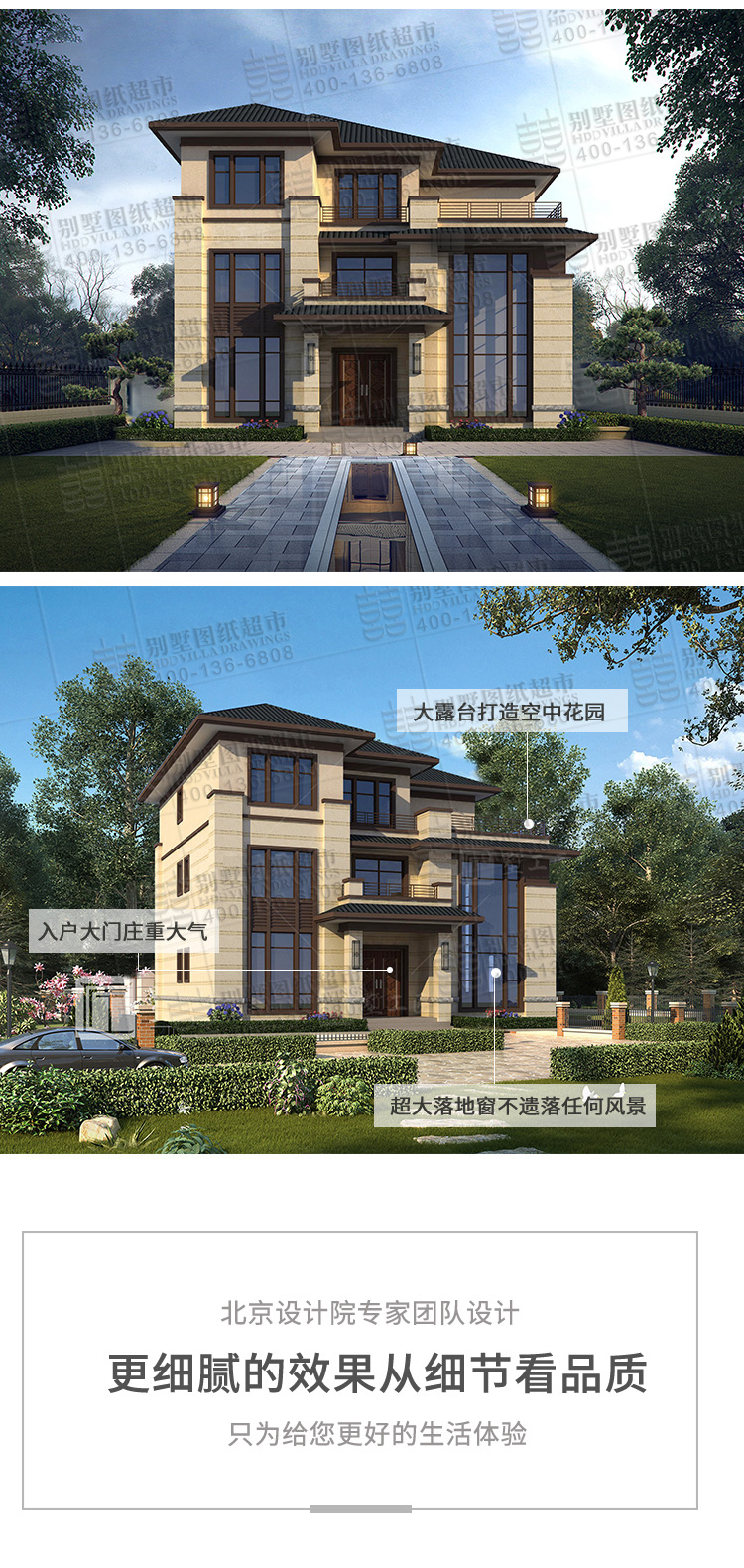 购买本套图纸仅提供打印好的图纸一份,我们不出售电子文件、光盘。我们设计的图纸非常详细,用A3规格打印图纸,比传统蓝图更清晰、容易复印、方便收藏,可以直接应用到施工现场。售后服务仅为图纸答疑,不包任何修改,因为只要其中一张图纸改变,其它图纸相应均需修改,工作量较大,所以我们不包修改。如果您个性要求较多需按要求订做设计,请查看 别墅设计业务流程,并联系设计客服咨询设计收费标准。