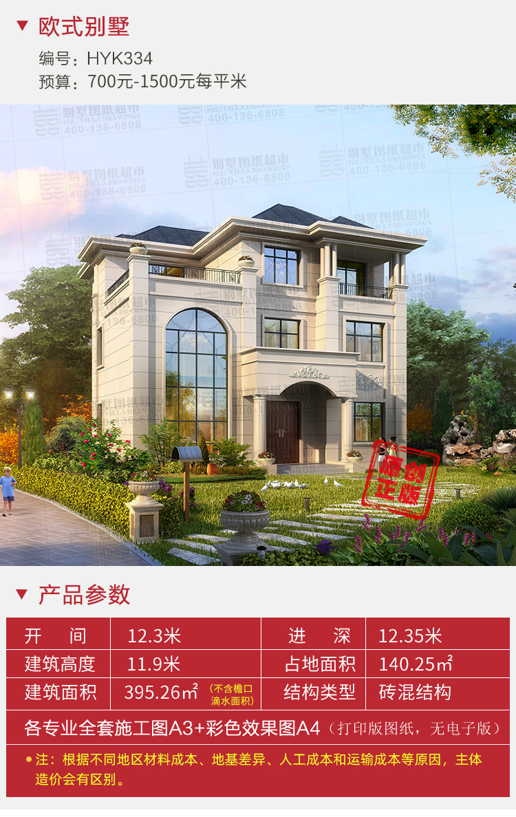 购买本套图纸仅提供打印好的图纸一份,我们不出售电子文件、光盘。我们设计的图纸非常详细,用A3规格打印图纸,比传统蓝图更清晰、容易复印、方便收藏,可以直接应用到施工现场。售后服务仅为图纸答疑,不包任何修改,因为只要其中一张图纸改变,其它图纸相应均需修改,工作量较大,所以我们不包修改。如果您个性要求较多需按要求订做设计,请查看 别墅设计业务流程,并联系设计客服咨询设计收费标准。
