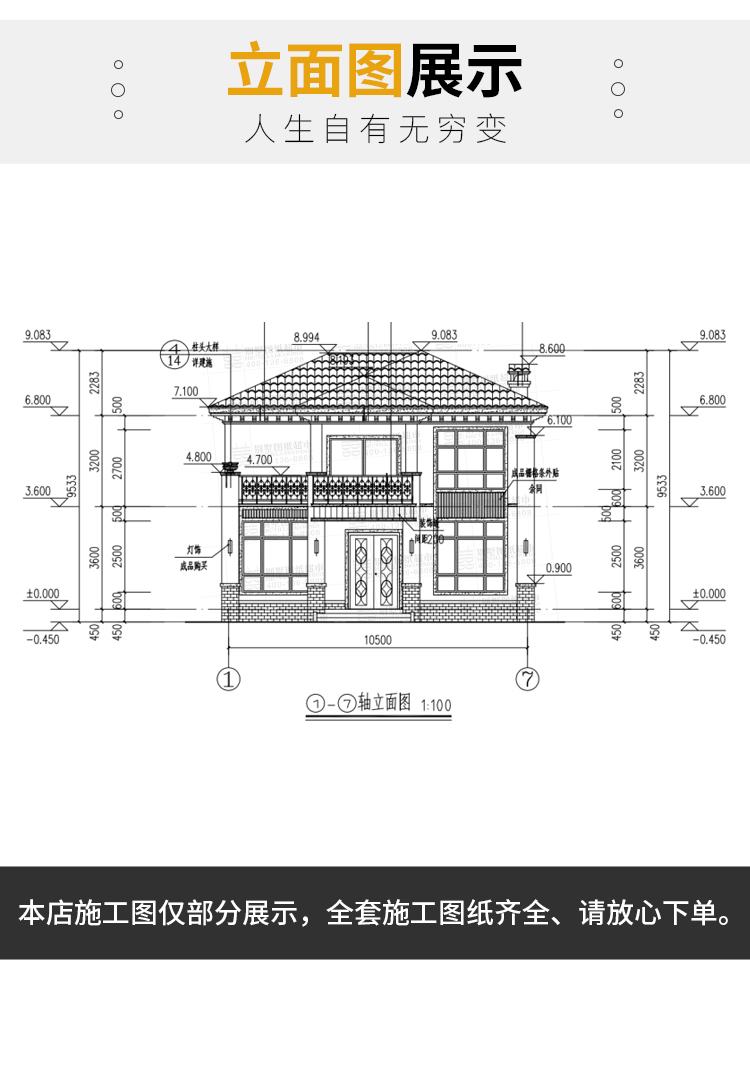 购买本套图纸仅提供打印好的图纸一份,我们不出售电子文件、光盘。我们设计的图纸非常详细,用A3规格打印图纸,比传统蓝图更清晰、容易复印、方便收藏,可以直接应用到施工现场。售后服务仅为图纸答疑,不包任何修改,因为只要其中一张图纸改变,其它图纸相应均需修改,工作量较大,所以我们不包修改。如果您个性要求较多需按要求订做设计,请查看 别墅设计业务流程,并联系设计客服咨询设计收费标准。