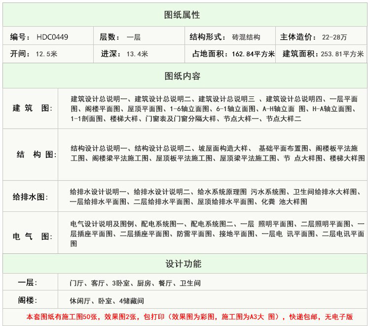 购买本套图纸仅提供打印好的图纸一份,我们不出售电子文件、光盘。我们设计的图纸非常详细,用A3规格打印图纸,比传统蓝图更清晰、容易复印、方便收藏,可以直接应用到施工现场。售后服务仅为图纸答疑,不包任何修改,因为只要其中一张图纸改变,其它图纸相应均需修改,工作量较大,所以我们不包修改。如果您个性要求较多需按要求订做设计,请查看 别墅设计业务流程,并联系设计客服咨询设计收费标准。